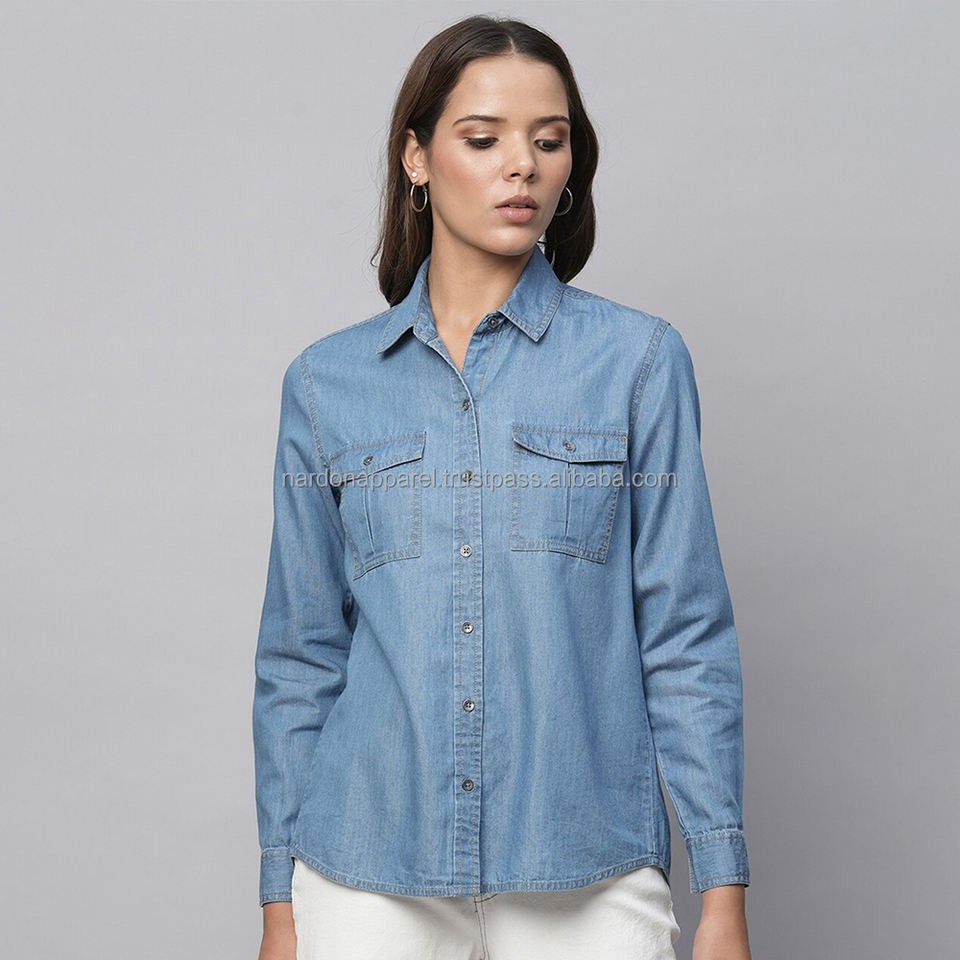 Nardon Apparel Women's Office Denim Shirt Trendy and Classy for Fall Professional and Stylish