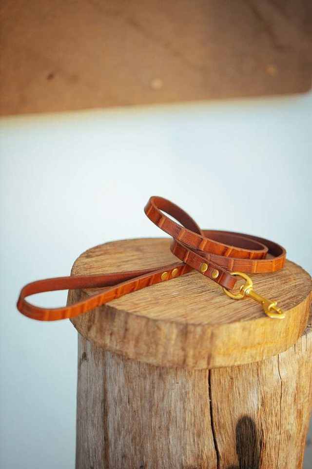 Narrow Dog Leash - Tan Croc Print Weight Reduction