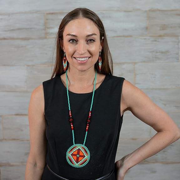 Native Style Trendy Jewelry Set Beaded Necklace & Earrings with Large Rosette Pendant for Anniversaries Weddings Parties