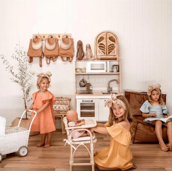 Natura Cute Rattan Doll High Chair for Baby Doll Natural Color Factory Price