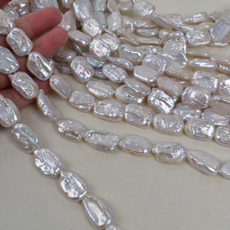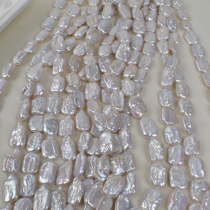 Natural 12-18mm White Freshwater Pearl Block Loose Beads for DIY Semi-Finished Necklace Baroque Irregular with Slight Wrinkles