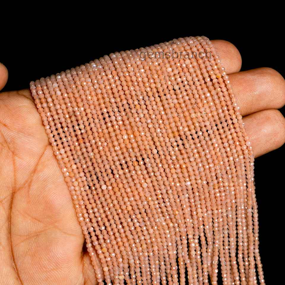 Natural 2mm Peach Moonstone Micro Faceted Round Beads Strands Wholesale Price Loose Gemstone Beads for Jewelry Making Bulk 13"