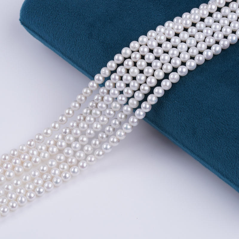Natural 5-5.5mm Round White Freshwater Pearls Loose Pink Colored Beads for DIY Necklace Accessories Pearl String