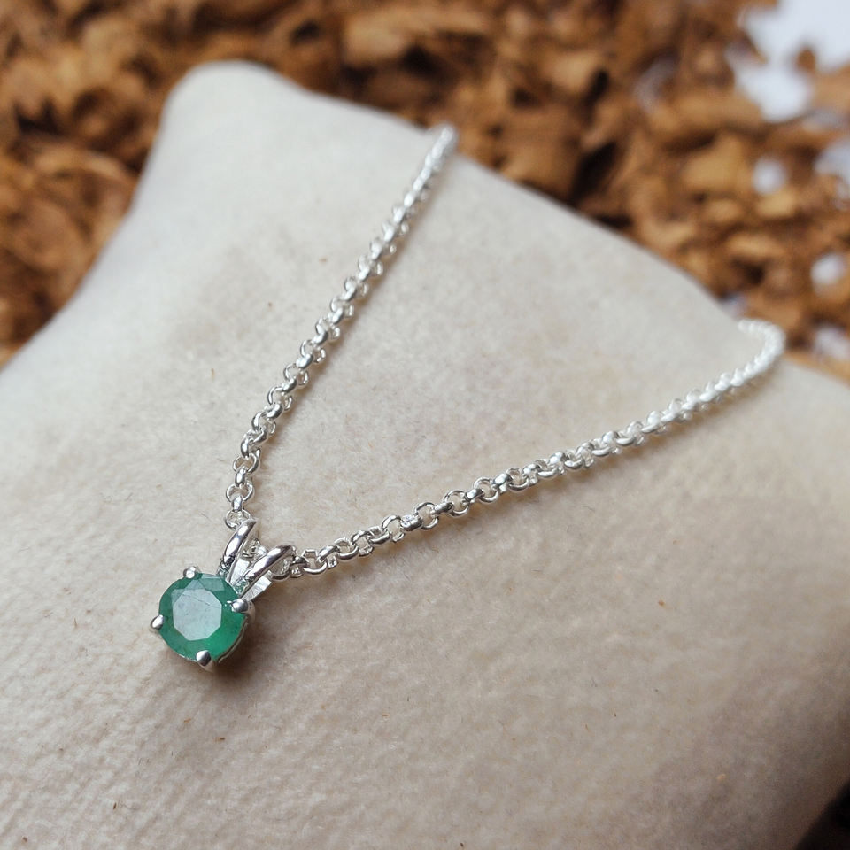 Natural 5mm Green Emerald (Dyed) Sterling Silver Prong Set Birthstone Charm Necklace Boho Birthstone Necklace Sterling Necklaces