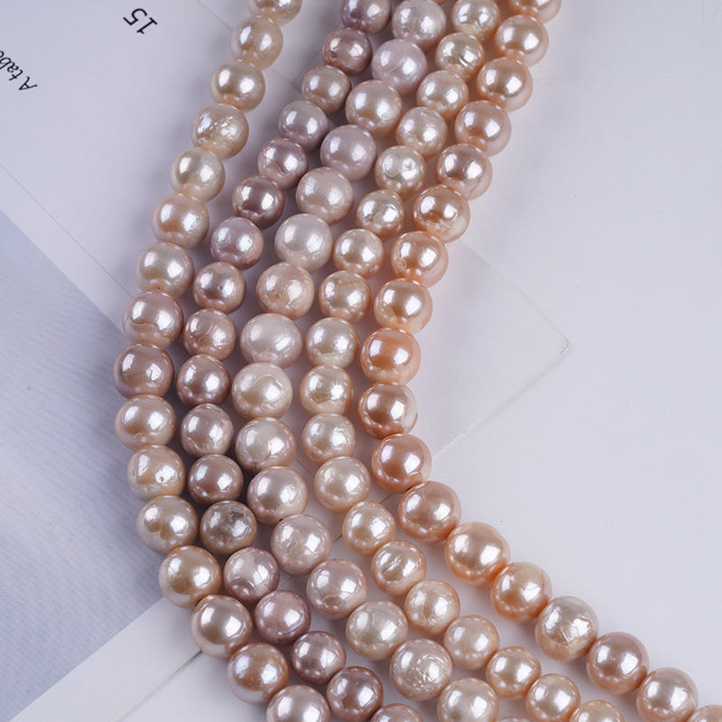 Natural 9-10mm Freshwater Double-Sided Gloss Straight Hole Mixed Color Loose Semi-Finished Pearl Necklace and Bracelet for DIY