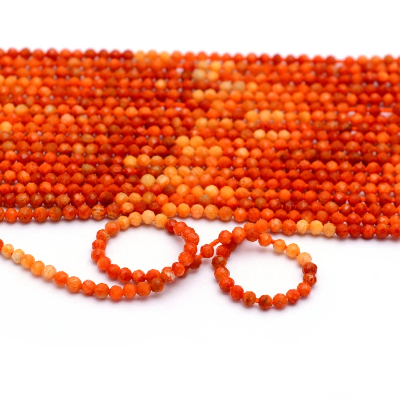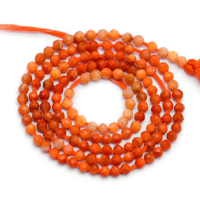 Natural AAA Orange/Red Coral 2mm-3mm Micro Faceted Beads | 13inch Strand | Multi Coral Gemstone Loose Round Beads for Jewelry