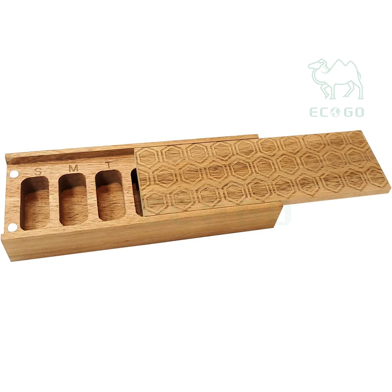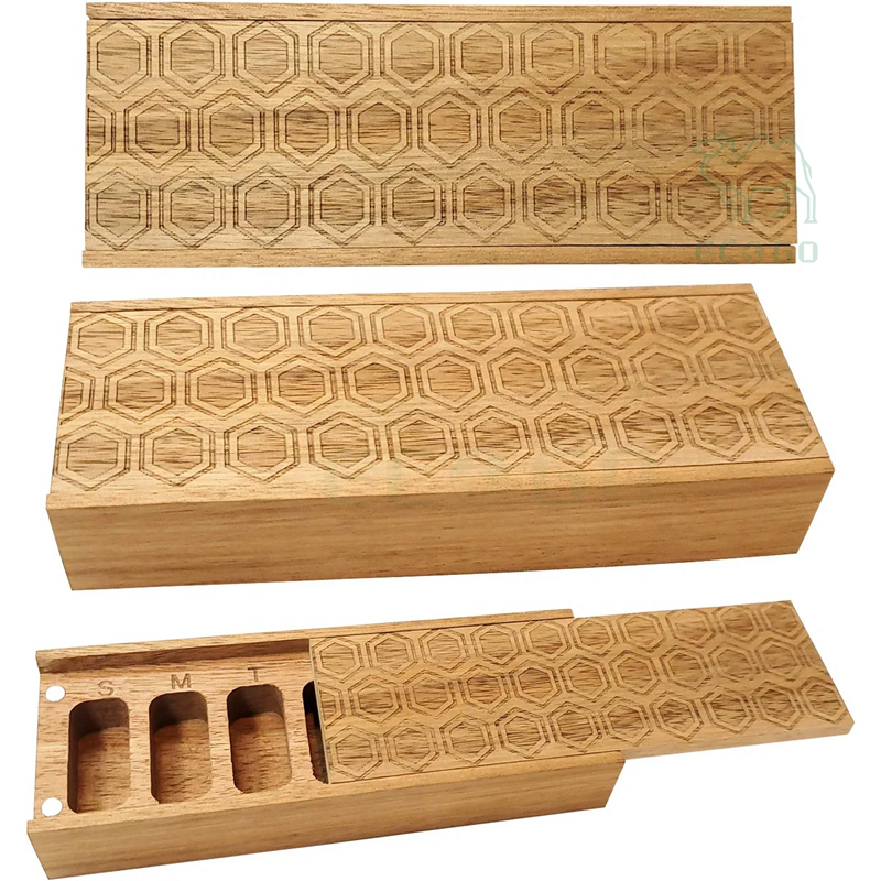 Natural Acacia Wood 7 Day Weekly Pill Box Pill Organizer for Vitamins Daily Supplements Pill Container