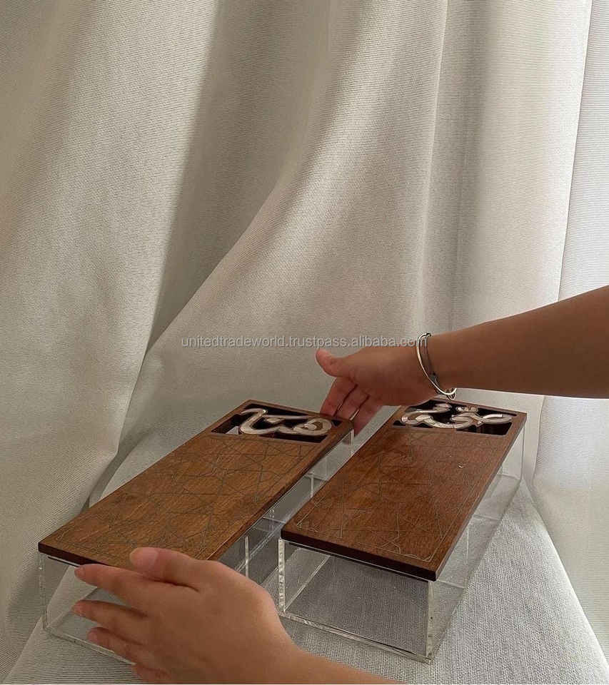 Natural Acacia Wood & Mother of Pearl Lid With Acrylic Box Jar or Container for Storage by United Trade World