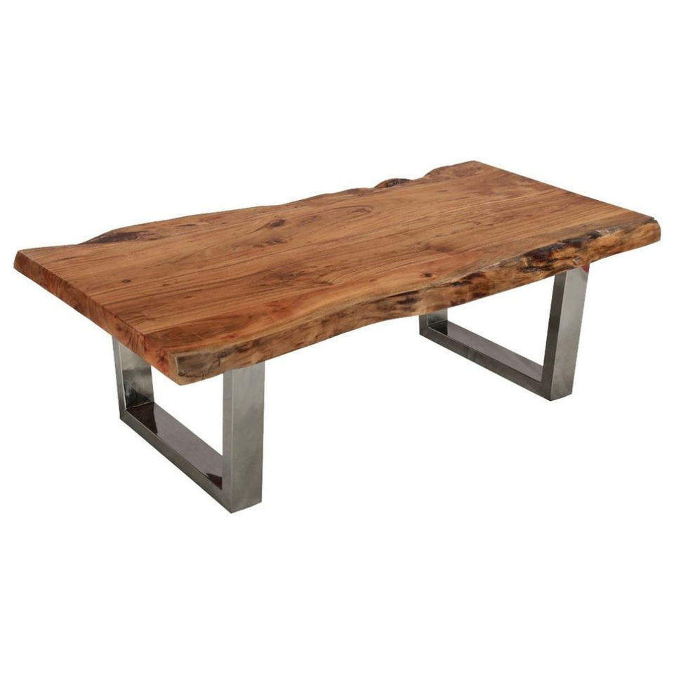Modern Natural Acacia Wood and Steel Live Edge Solid Mango Wood Round Coffee Table for Living Room and Bedroom Use
