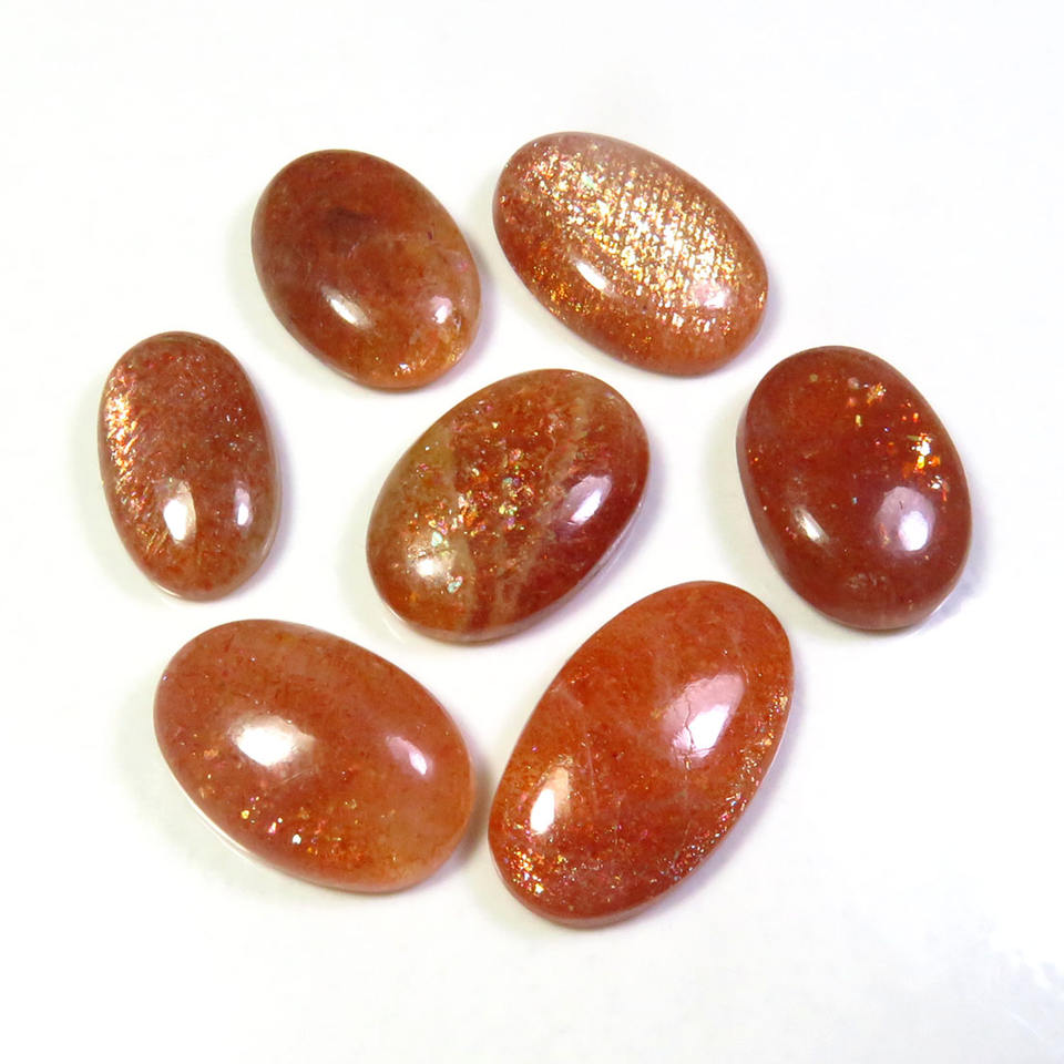 Natural African Sunstone Polished Cabochon 19x12-25x14 mm Oval Shape Orange Rainbow Sparkle Loose Gemstone