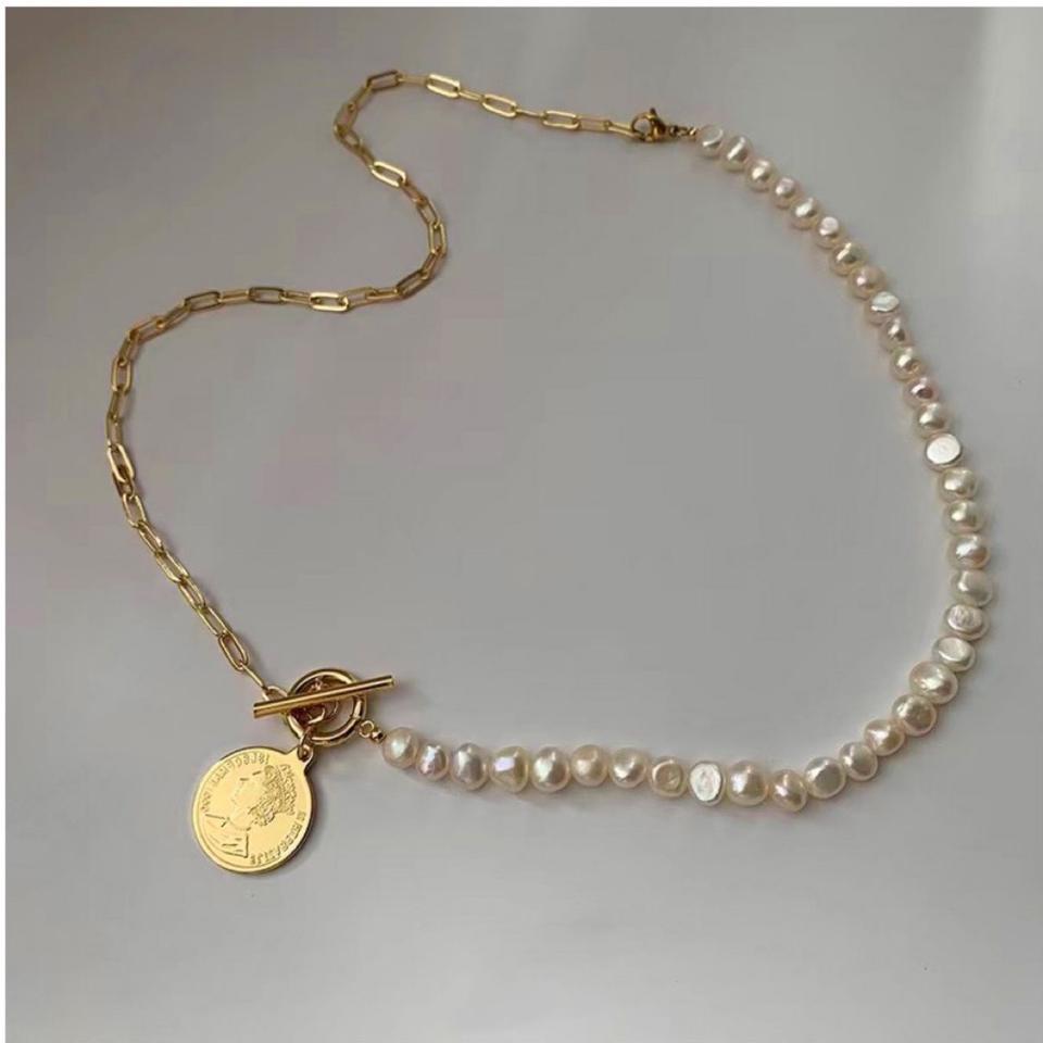 Natural Alien Freshwater Pearl Queen Charm Necklace Retro Simple OT Buckle Clavicle Chain Best Friend Gift for Trendy Girls