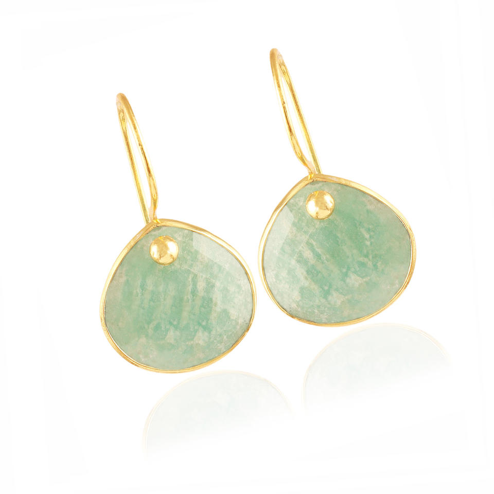 Natural Amazonite Bezel Set Women Earring, 925 Sterling Silver Jewelry, Handmade Heart Shape Gemstone Hook Earring Gift For Her