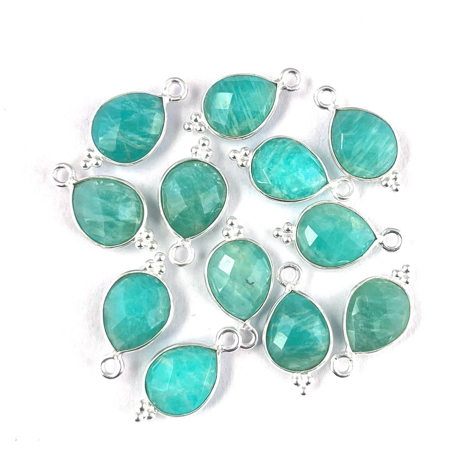 Natural Amazonite Gemstone Size 10x8mm Pear Shape Faceted Cut Gold Vermeil 925 Sterling Silver Bezel Set Trendy Pendant Charm