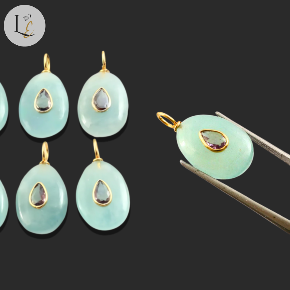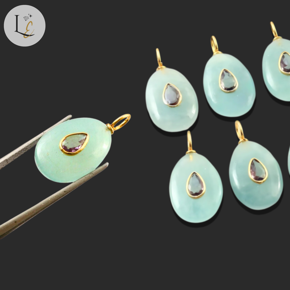 Natural Amazonite Oval Shape Inlay Gemstone Pendant