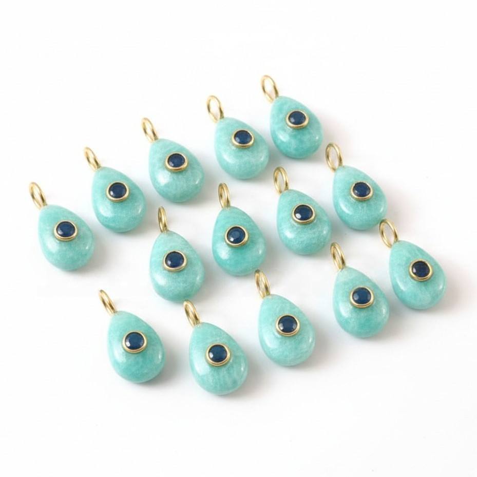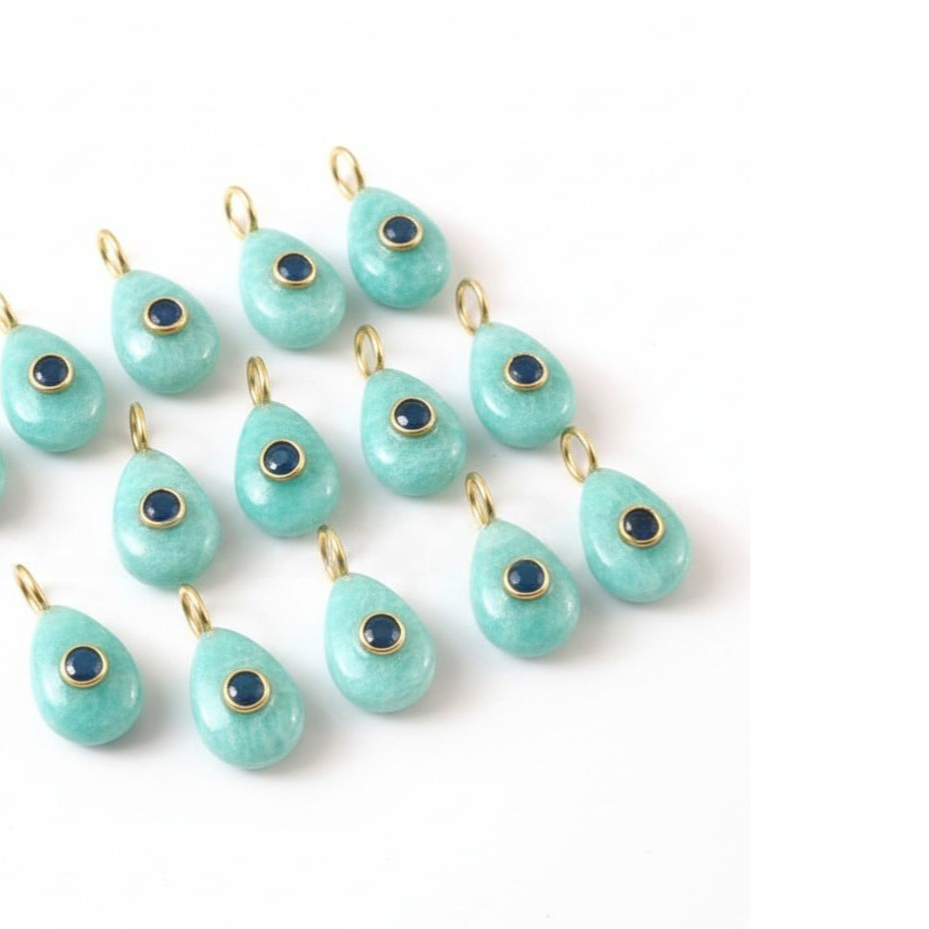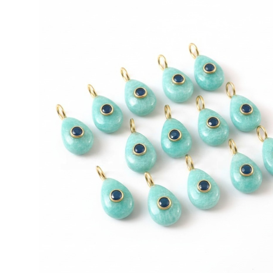 Natural Amazonite Pear Gemstone Handmade 925 Silver & Gold Plated Double Loose Stone Inlay Fashion Pendant Charm Fashion Jewelry