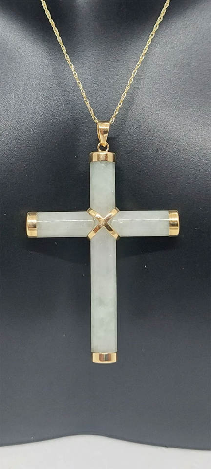 Natural Amazonite Stone Cross Pendant Necklace Gold Plated Handmade Christian Faith Jewelry for Women