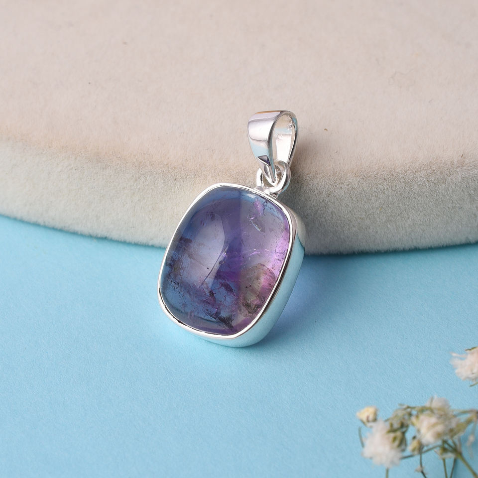 Natural Amethy St Cushion Shape Gemstone 925 Sterling Silver Pendant