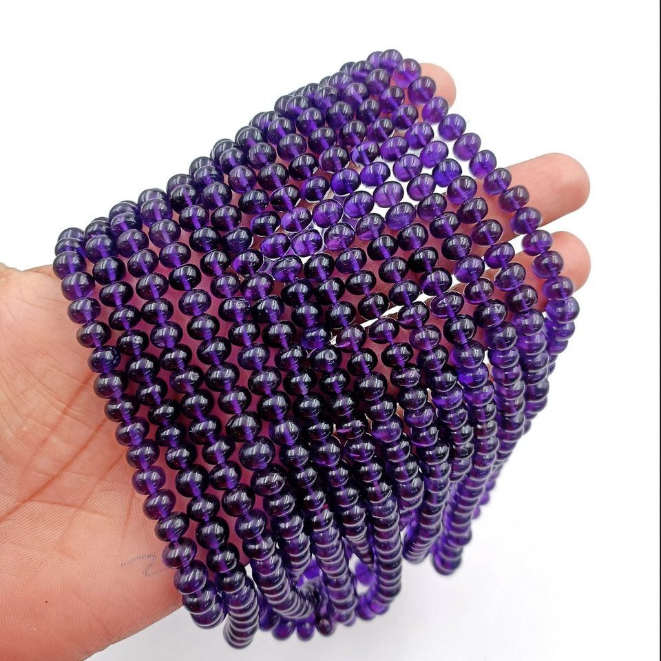 Natural Amethyst Smooth Round Polish Beads