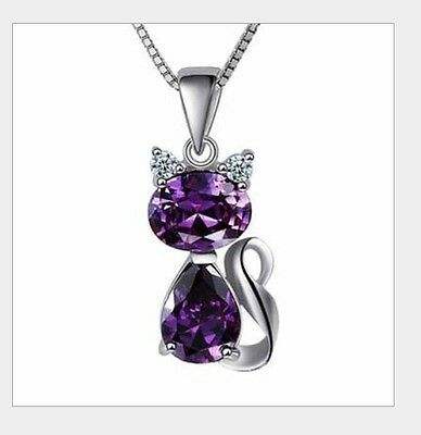 Natural Amethyst Cat Pendant Necklace in 925 Sterling Silver