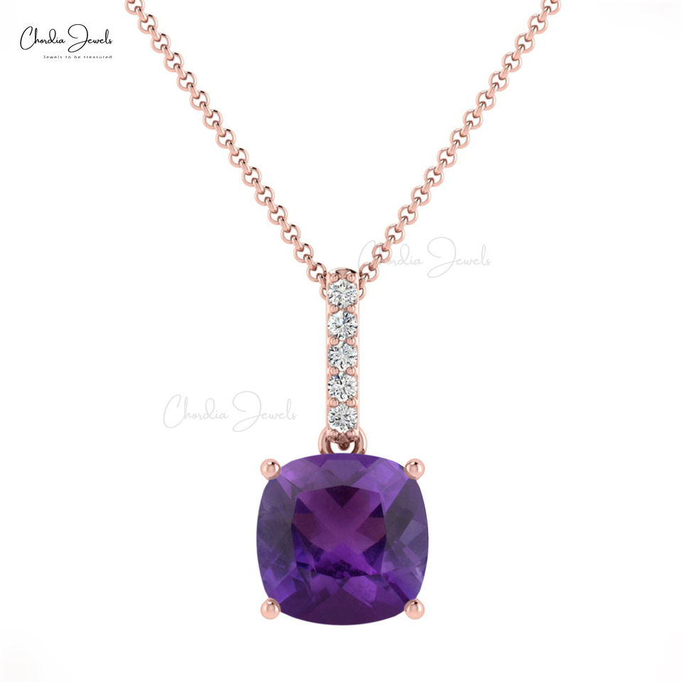 Natural Amethyst Certified Gemstone Pendant Minimalist Diamond Pendant 14k Solid Yellow Gold Dangling Pendant Wholesale Price