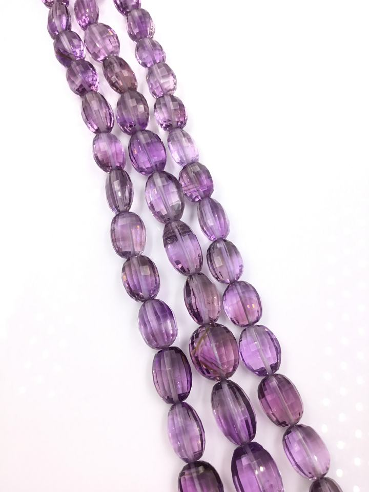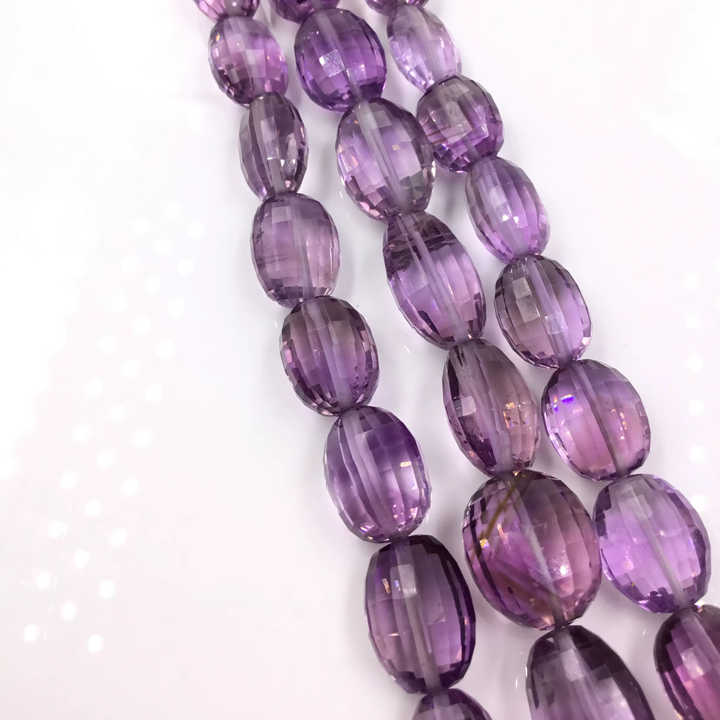 Natural Amethyst Checker Cut Oval Beads Fir Fine Jewelry Making Gemstone Necklace