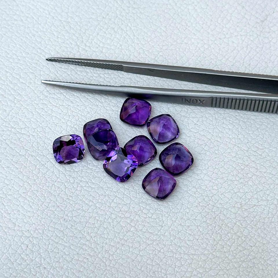 Natural Amethyst Cushion 5mm to 8mm Faceted Gemstone High Quality Natural Vivid Purple Loose African Amethyst Gemstone Jewelry