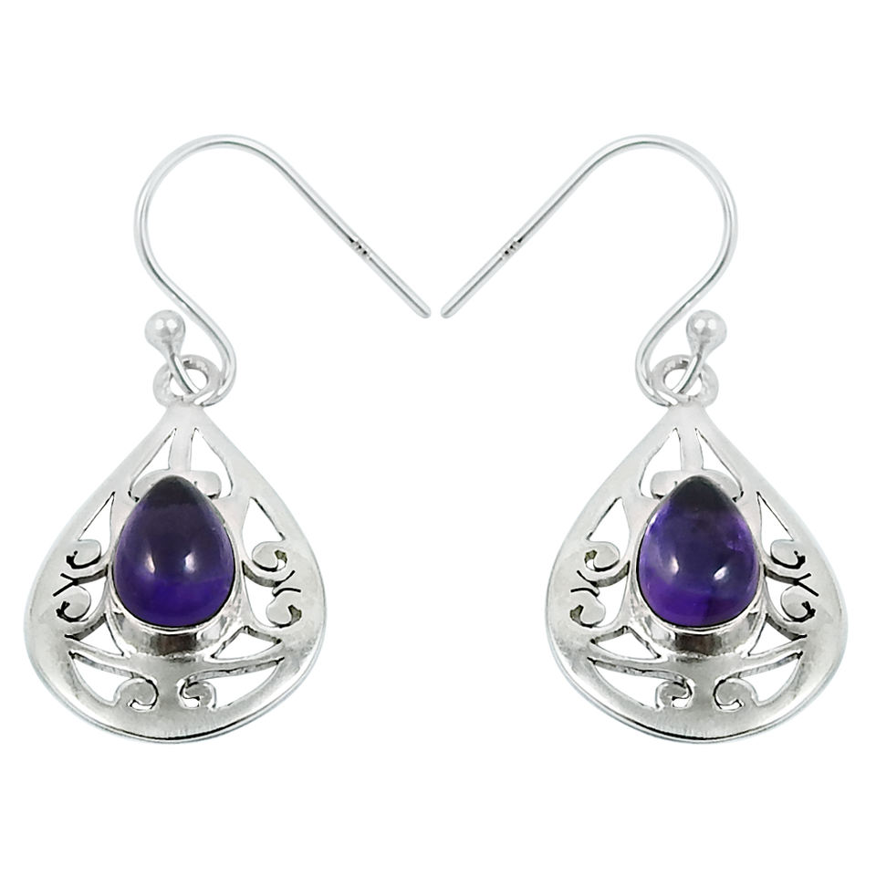 Natural Amethyst Gemstone Drop Earring 925 Sterling Silver for Women and Girls Handmade Jewelry Wholesaler Manufacturer Supplier