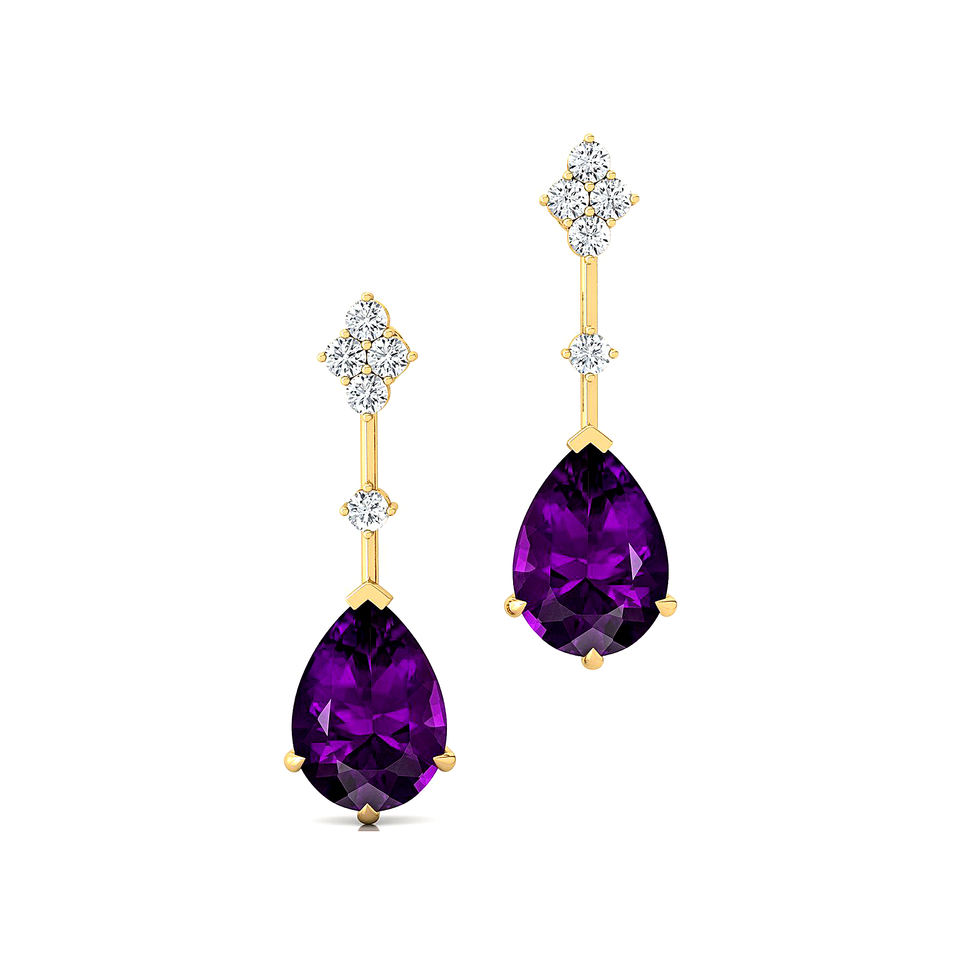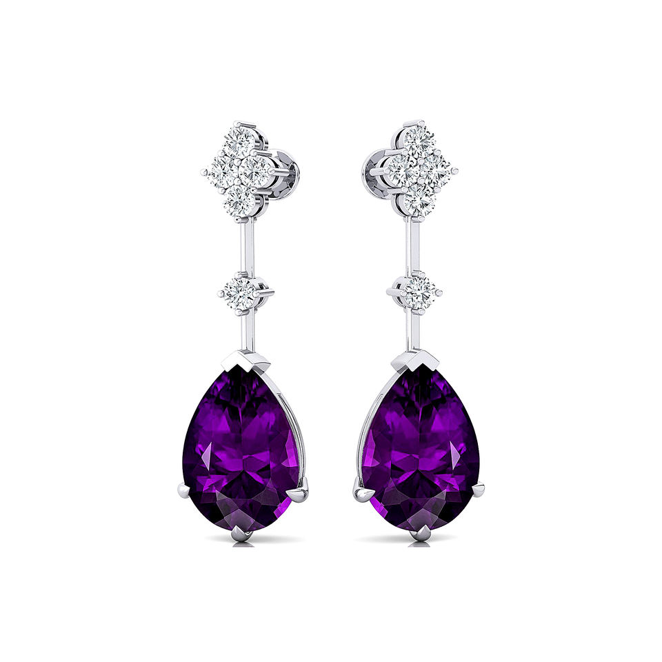 Natural Amethyst Gemstone Stud Earrings 18k Gold Rhodium Plated Cute Minimalist 7x10mm Pear Cut Diamond Wholesale