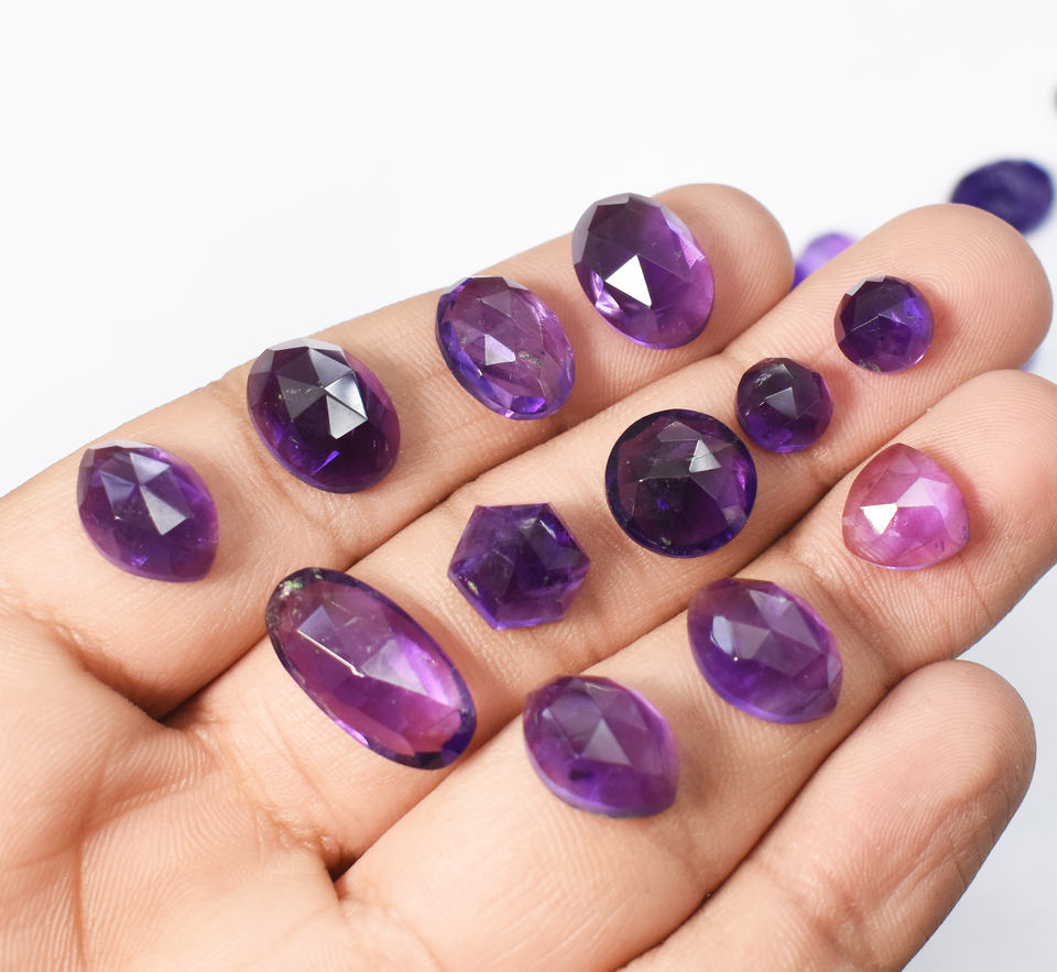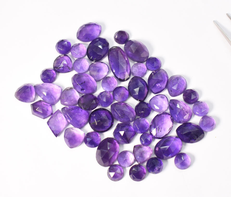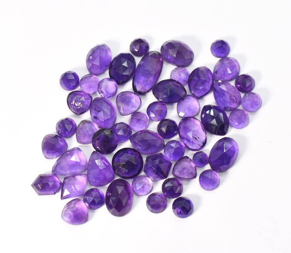 Natural Amethyst Rose Cut Faceted Wholesale Lot 176.15 Cts 50 Pieces Lot Average Size 14X10 - 8 mm Natural African Amethyst