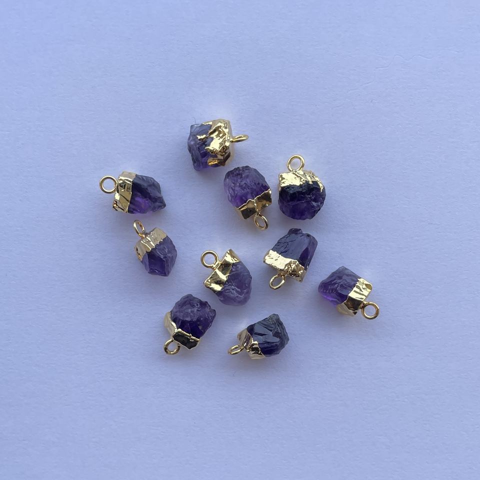 Natural Amethyst Rough Stone Connector Pendant in 925 Sterling Silver With Gold Electroplating Raw Stone Trending Jewelry 2025