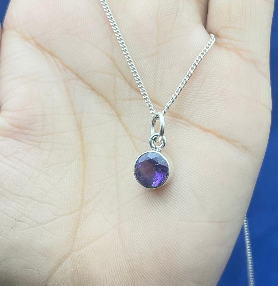 Natural Amethyst Silver Pendant Necklace, Statement Necklace for Women, Purple Amethyst Pendant Necklace, February Birthstone