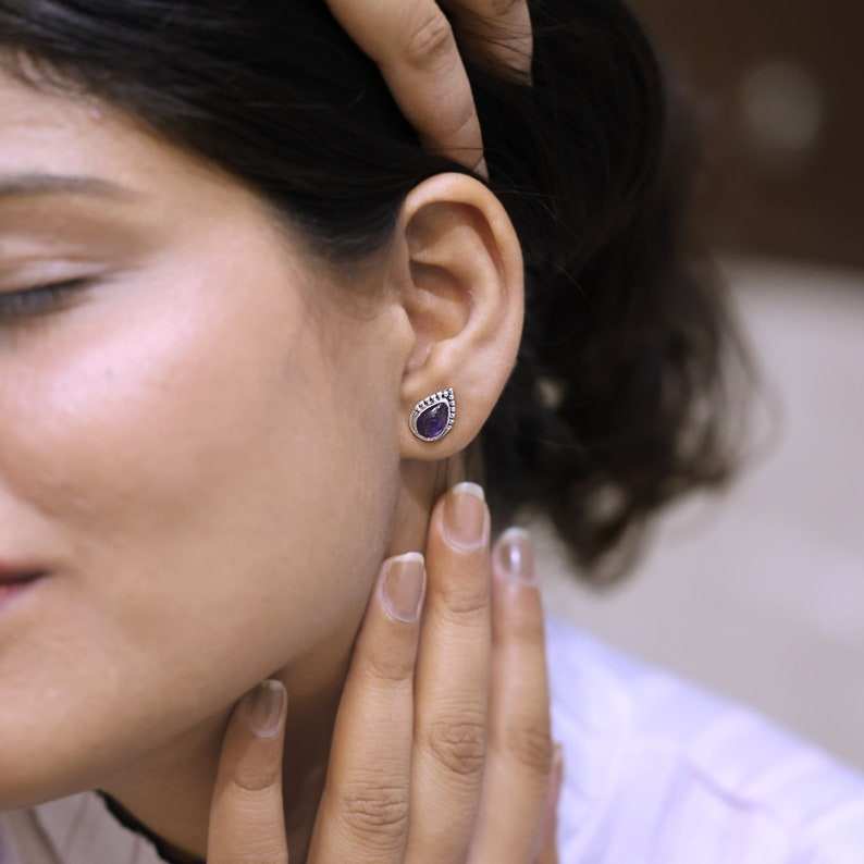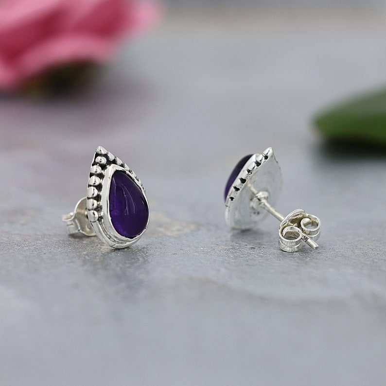 Natural Amethyst Smooth Pear Shape Gemstone Earrings for Women 925 Sterling Silver Studs Earrings Fine Jewelry Sets Wholesale