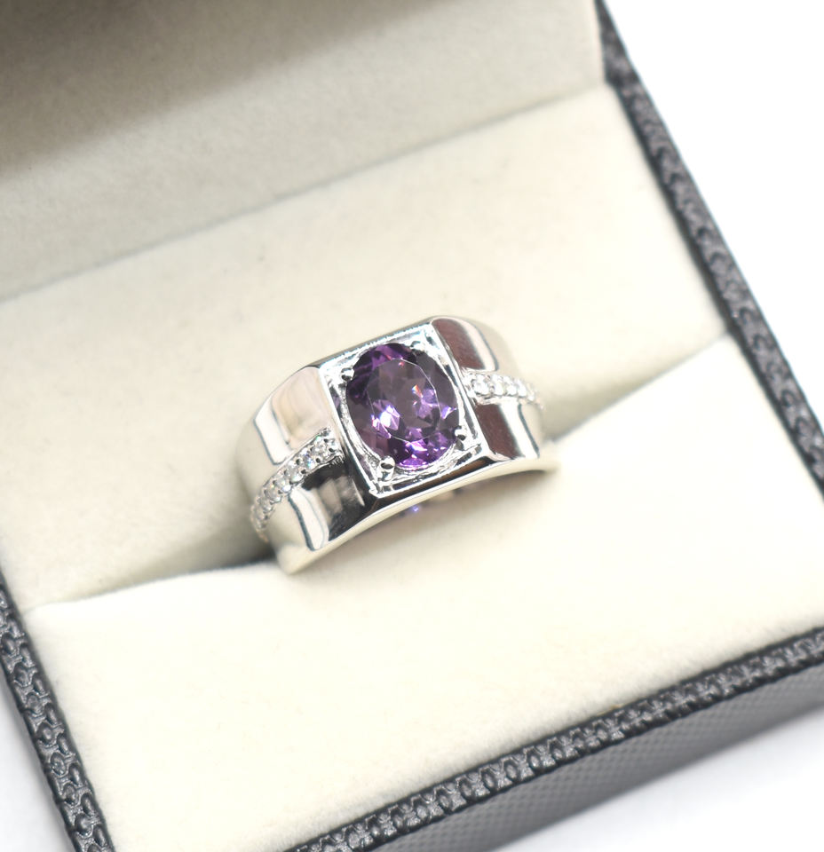 Natural Amethyst Engagement Ring Unique Oval Cut Gemstone Ring Christmas Gift Wedding Anniversary Ring 925 Sterling Silver