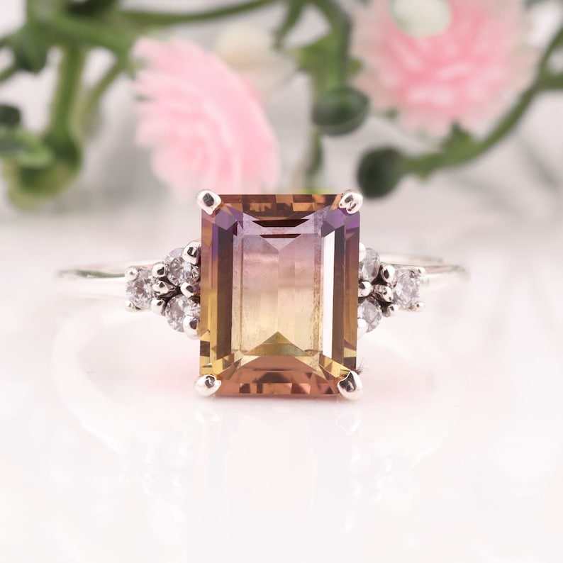 Key words:Attractive Bride Ring Natural Baguette Ametrine Ring