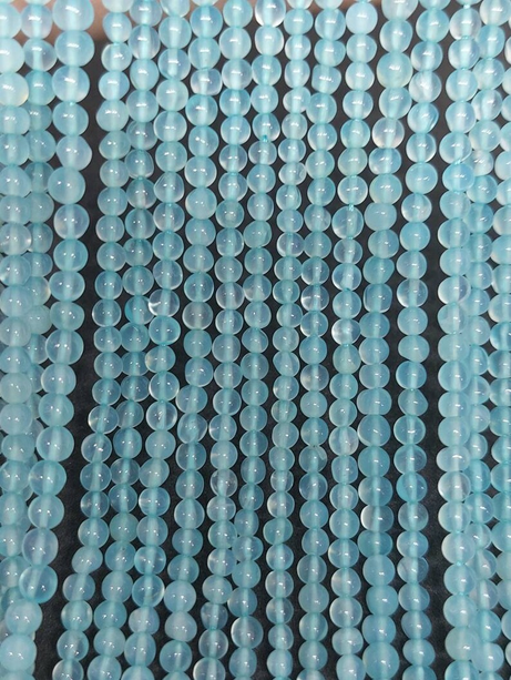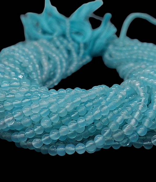 Natural Aqua Chalcedony Round Smooth Beads for Jewelry Anklet Bracelet for Women 15inch Rondelles Strands Wholesale Gemstone