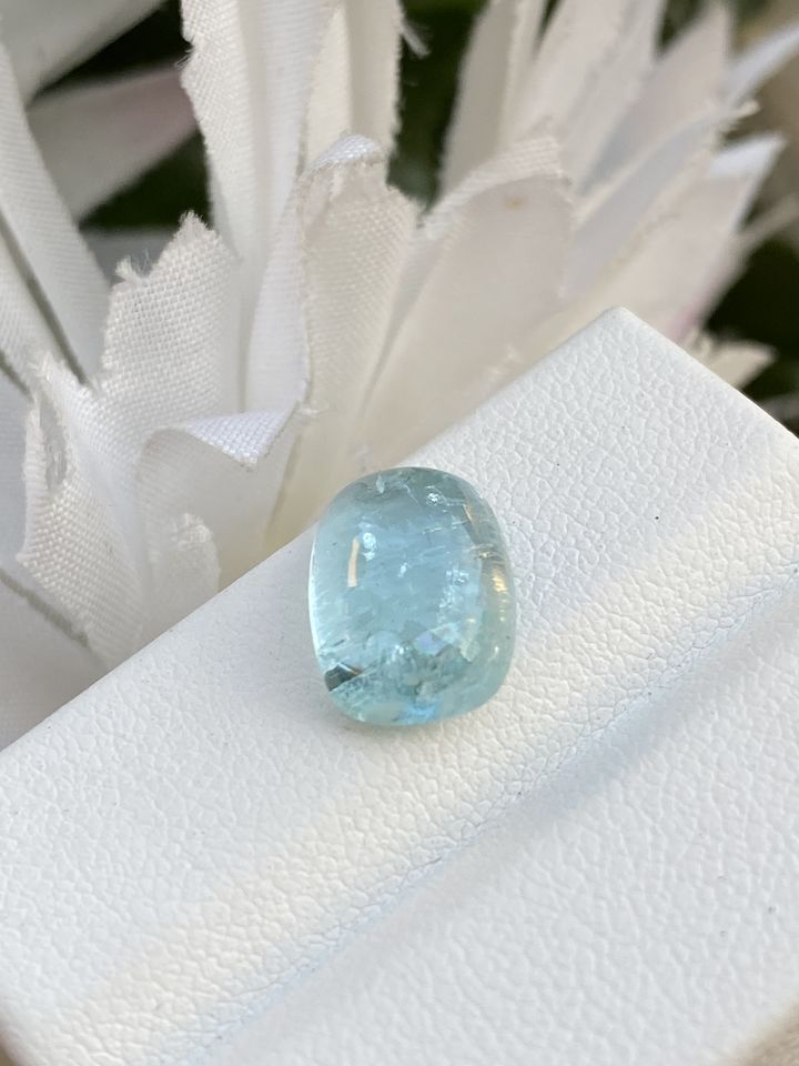 Natural Aquamarine Cushion Shape Cabochons Top Color 4.46 Carat Loose Gemstone with Good Luster for Jewelry Making