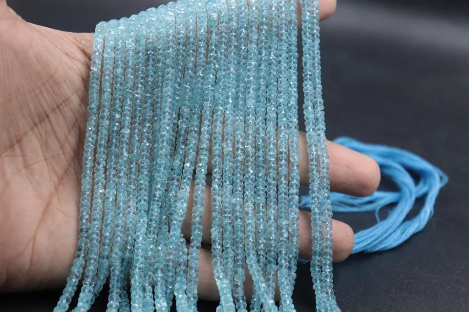Natural Aquamarine Faceted Rondelle Shape Beads 3-5mm for Jewelry Making