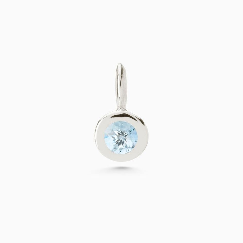 Natural Aquamarine Round Pendant Silver-Plated Bezel Set Dainty Gemstone Charm Handmade Jewelry for Women