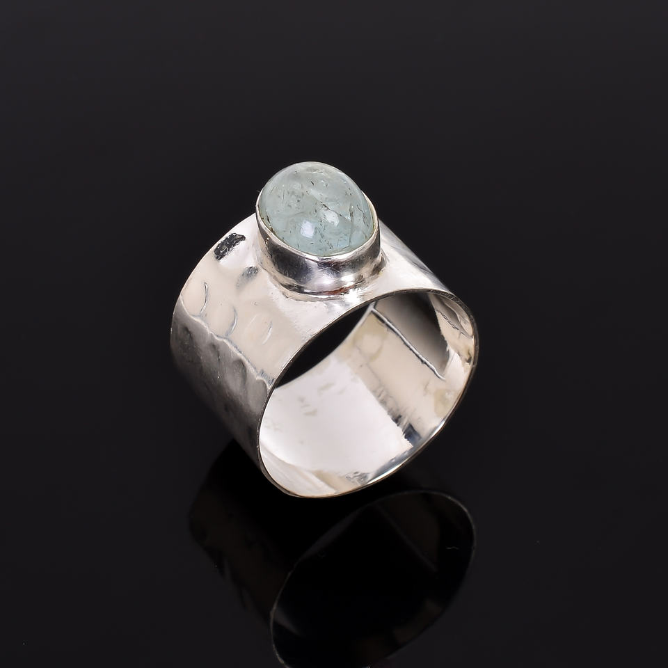 Natural Aquamarine Spinner Silver Ring Aquamarine Gemstone Silver Statement Ring Handmade Silver Ring for Women's