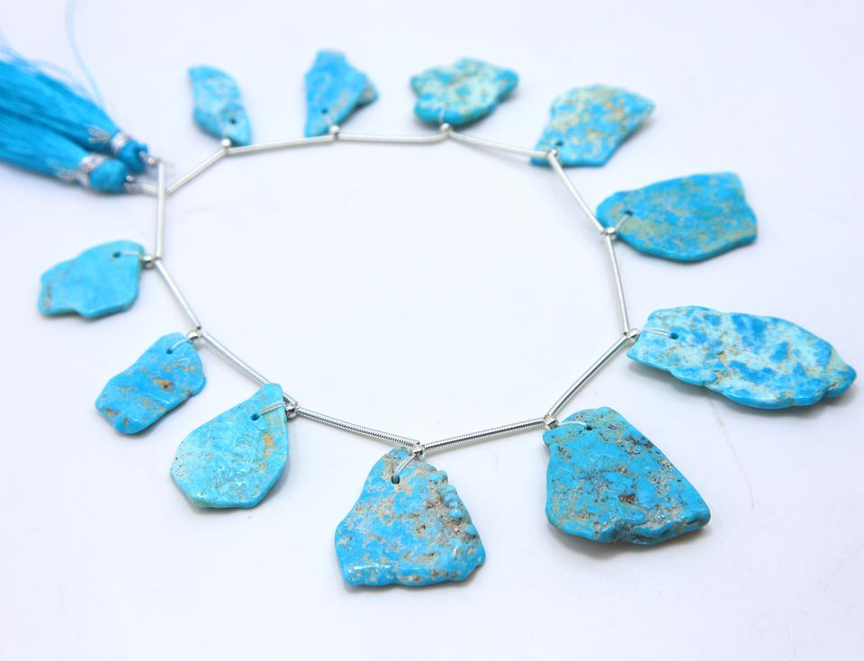 Natural Arizona Turquoise 11pcs Smooth Rough Face Drill Beads Loose Gemstone for Jewelry Making