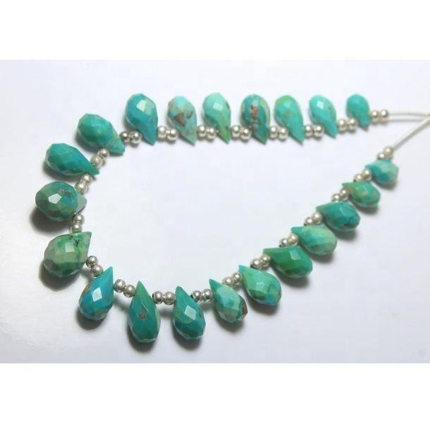 Natural Arizona Turquoise Faceted Drops Beads 9x6mm to 14x9mm Approx 8 Inch