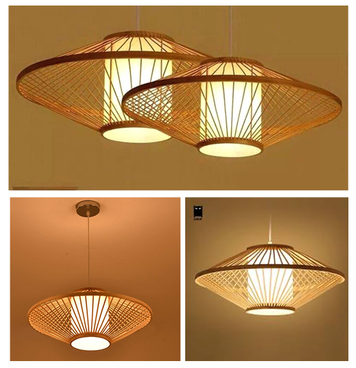 Natural Asia Hand Knitted Bamboo Hanging Light Rustic Lamp Shade Rattan Pendant Minimalist Coastal for Home Decor Restaurant