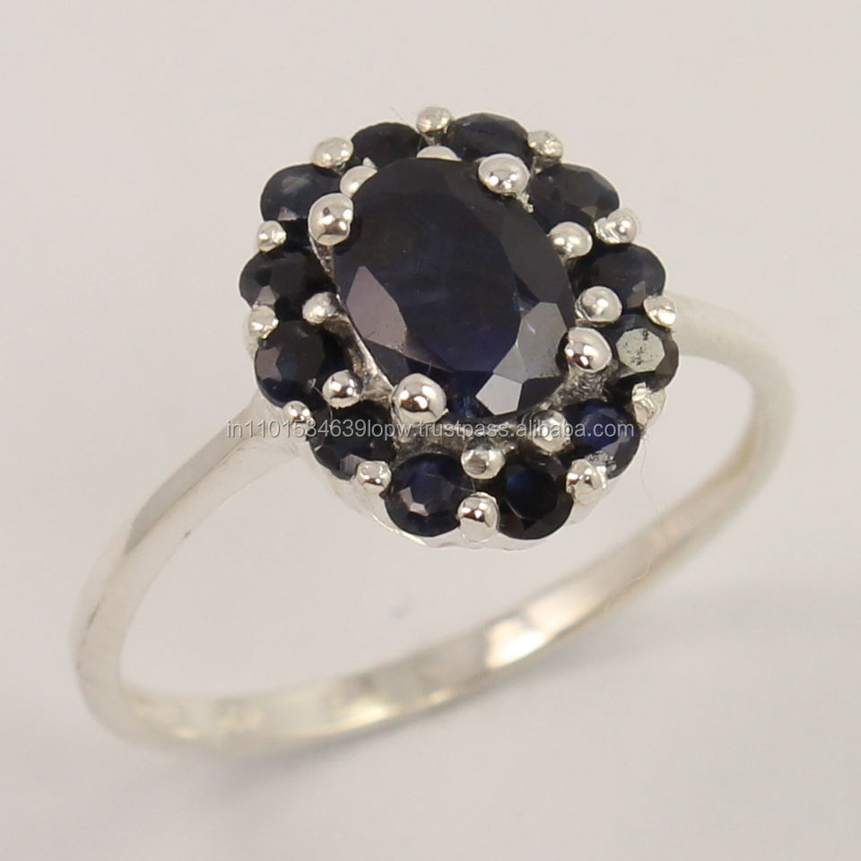 Natural BLUE SAPPHIRE Classic Claw Setting Oval and Round Shaped Gemstone 925 Solid Sterling Silver Trendy Ring Any Size