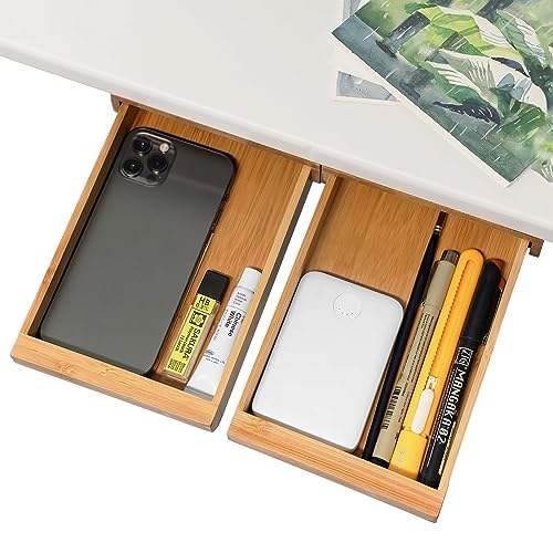 Natural Bamboo Adjustable Length and Angle Dual Monitor Stand Riser Easily Installed Customized Desktop Organizer with Drawer
