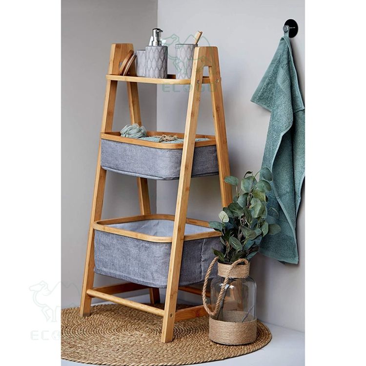 Natural Bamboo Mesh Laundry Basket Custom Logo Storage Basket 2-Compartment Bamboo Laundry Basket