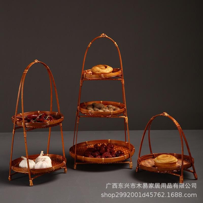 Natural Bamboo Multi-Tier Tray Durable Snack & Dessert Holder for Restaurant