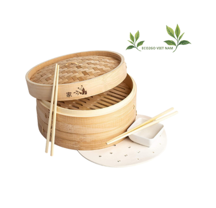 Natural Bamboo Steamer Pot with Cover/ Bamboo Steamer Food Big Size with Engraved Laser logo Customized Made in Eco2go Vietnam