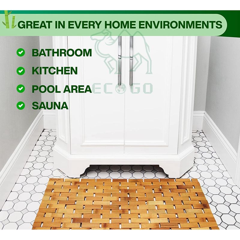 Natural Bamboo Wood Bath Mat Large Foldable Bathmat, Accessories for Bathroom Non Slip Spa Tub