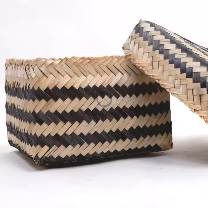Natural Bamboo Woven Storage Box With Lid Square Organizer For Living Room Or Pantry Use