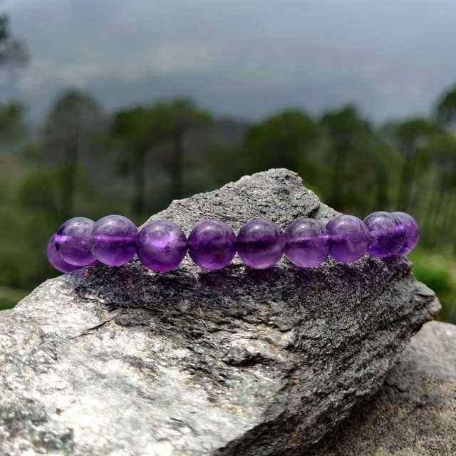 Natural Beaded Stretch Amethyst Bracelet 8mm round Purple Crystal Stone Feng Shui Religious Style Reiki Balance Gemstone Healing